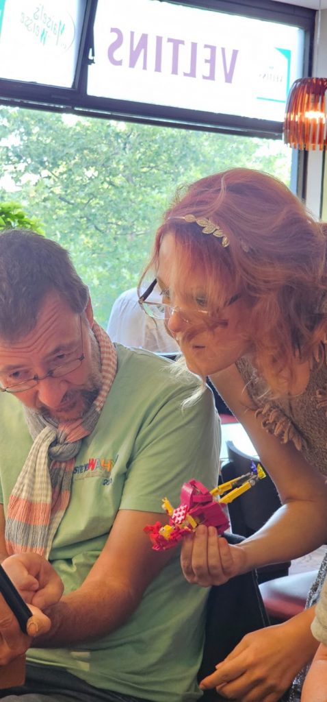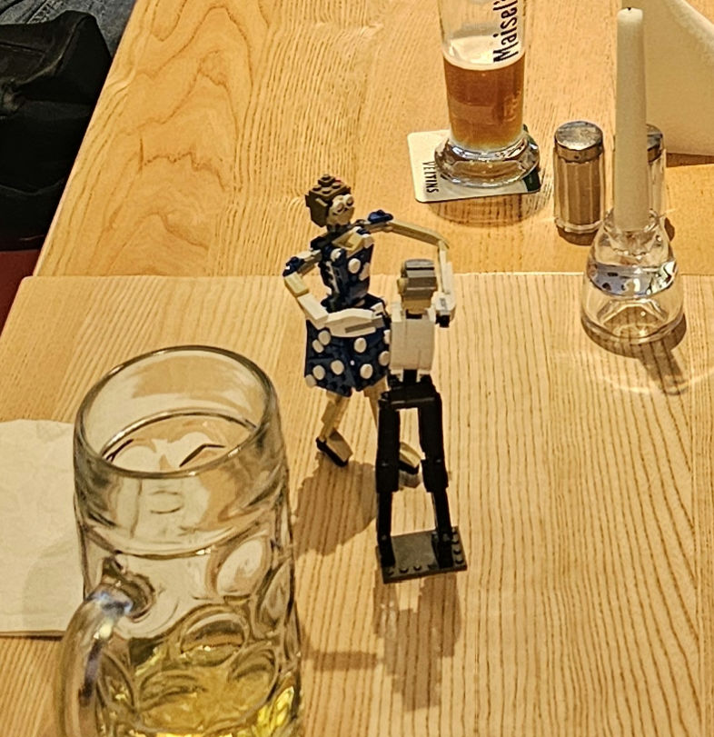 Daher wurde viel und angenehm diskutiert. Leider hatten nur wenige der ca. 20 Teilnehmer (es war ein geschäftiges kommen und gehen) auch eigene Kreationen dabei. Immerhin konnte man schon Figuren für die „Selbstportrait-Challenge“ in Augenschein nehmen. Die im Raum stehende Frage, ob man sich dabei ganz streng an die doch starre „Miniland“-Form halten muss, wurde klar verneint. Um klar voneinander unterscheidbare Charaktere darzustellen sind Figuren, die etwas größer als „Miniland“ sind und die vielleicht bewegliche Gliedmaßen haben, vollkommen ok. Die Kreativität soll auch hier natürlich nicht zu kurz kommen.