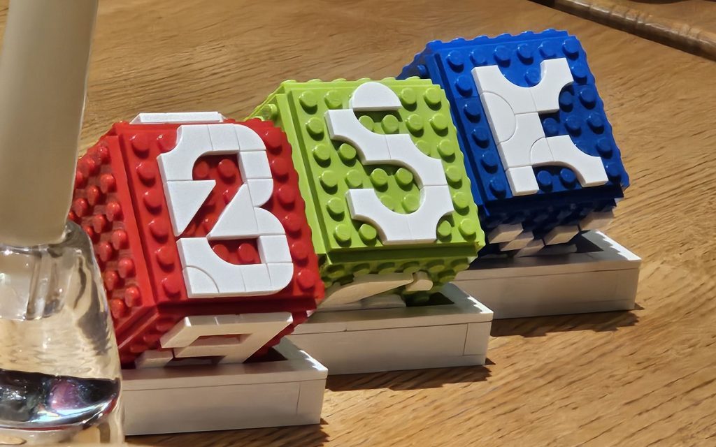 Frisch erbeutete Schätze wie aktuelle Minifigs etc. wurden stolz präsentiert. Andererseits eigentlich erstaunlich, dass niemand MOCs mitgebracht hatte; Asche übrigens auch auf mein Haupt in dieser Hinsicht. Das obligatorische BSK-Stammtisch-Logo durfte hingegen nicht fehlen: